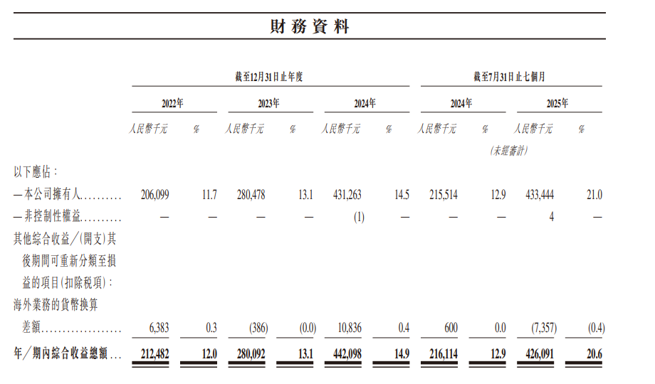 业绩方面,该公司截至2022年、2023年及2024年12月31日止年度以及截至2024年及2025年7月31日止七个月的收入分别为人民币1,765.7百万元、人民币2,144.2百万元、人民币2,976.6百万元、人民币1,677.5百万元及人民币2,068.4百万元。